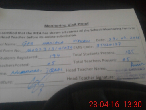 | Certified that this School was Inspected by the Undersigned MEA/DMO Today and the Information Stated Above is as Per Record. | |||||