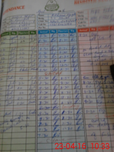 | 38**** | Sa**** Ir**** | S.S.(SC) | 0 | 0 | 0 | 0 | 0 | 0 | 0 | 0 | 0 | Exam Duty | |