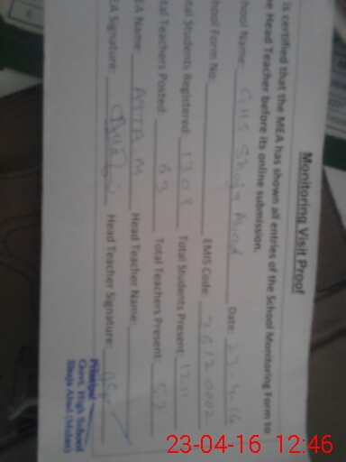 | EMIS Code: 36120002 | Name of School: GHS SHUJABAD | |||