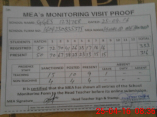 | Attendance Register | Head Teacher | MEA with School | Visit Proof |