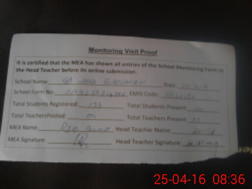 | Certified that this School was Inspected by the Undersigned MEA/DMO Today and the Information Stated Above is as Per Record. | |||||