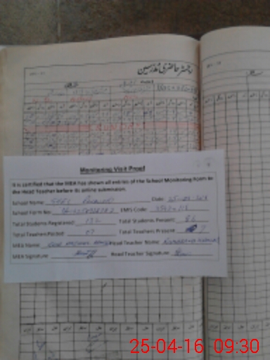 | Attendance Register | Head Teacher | MEA with School | Visit Proof |