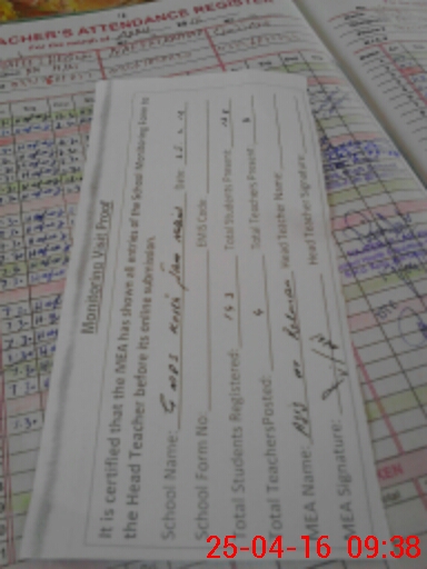 | Attendance Register | Head Teacher | MEA with School | Visit Proof |