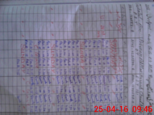 | Monitoring Date: 25-04-2016 | Start Time: 25-04-2016 08:03 AM | End Time: 25-04-2016 09:54 AM | Name of MEA: Mu**** Sa**** BN**** 33 | |