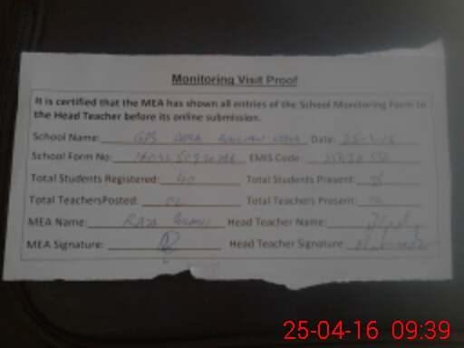 | Certified that this School was Inspected by the Undersigned MEA/DMO Today and the Information Stated Above is as Per Record. | |||||