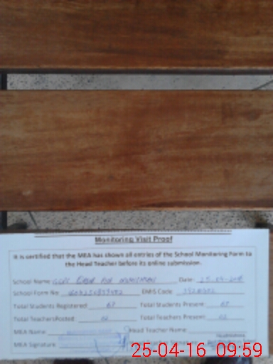 | Attendance Register | Head Teacher | MEA with School | Visit Proof |