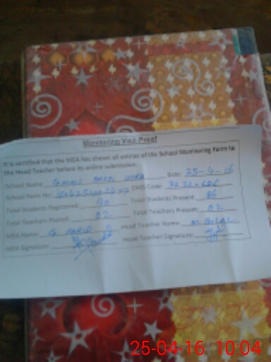 | Attendance Register | Head Teacher | MEA with School | Visit Proof |