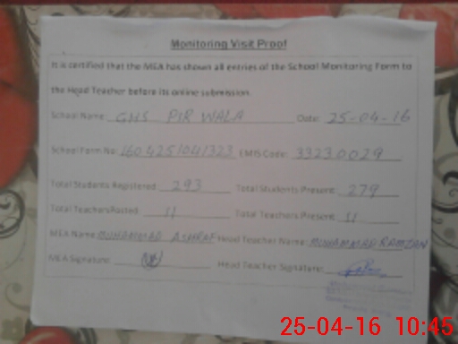 | EMIS Code: 33230029 | Name of School: GHS PIR WALA | |||