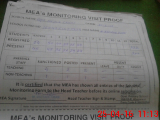 | Attendance Register | Head Teacher | MEA with School | Visit Proof |
