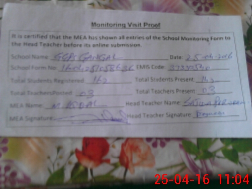 | EMIS Code: 37330540 | Name of School: GMPS GANGAL | |||