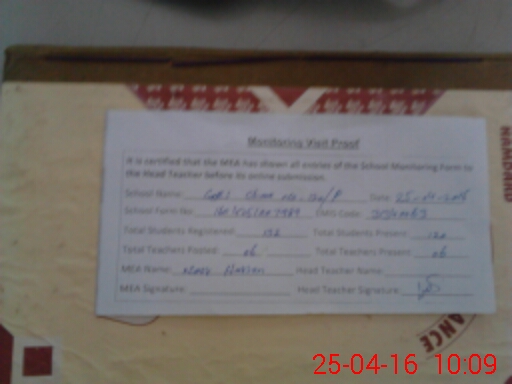 | Attendance Register | Head Teacher | MEA with School | Visit Proof |