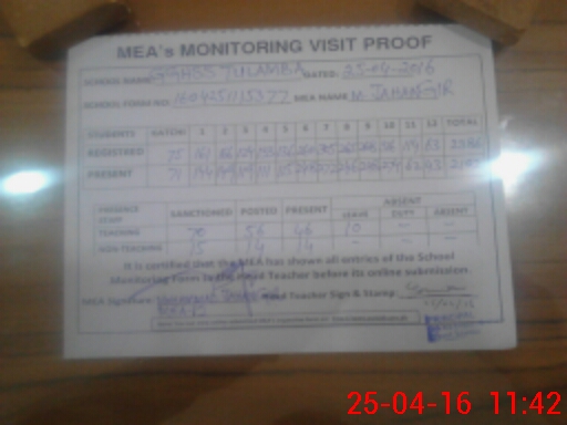 | Certified that this School was Inspected by the Undersigned MEA/DMO Today and the Information Stated Above is as Per Record. | |||||