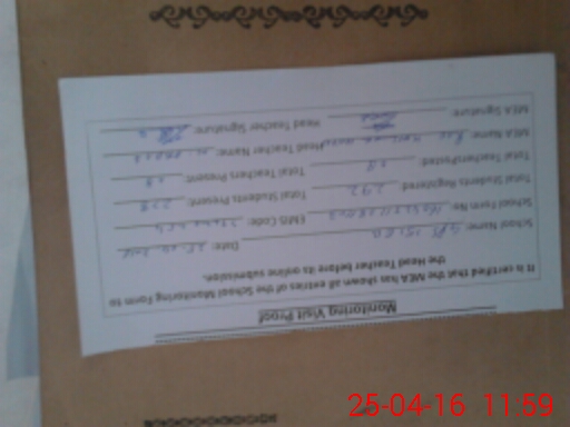 | Attendance Register | Head Teacher | MEA with School | Visit Proof |