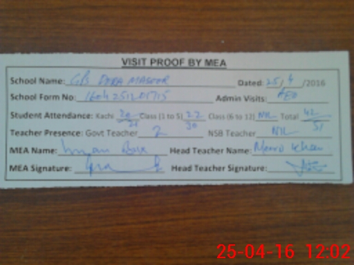 | EMIS Code: 32430063 | Name of School: GPS DERA MASOOR | |||
