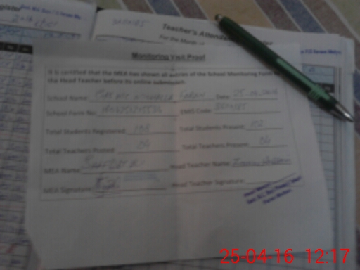 | Attendance Register | Head Teacher | MEA with School | Visit Proof |