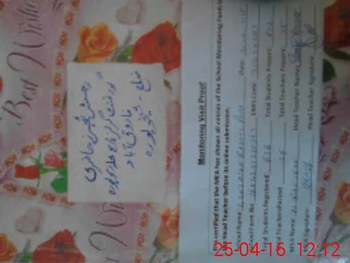 | Name: Ta**** Is**** Designation: (School Headmaster's/Headmistress's) EST Phone/Cell Number: 03**** |