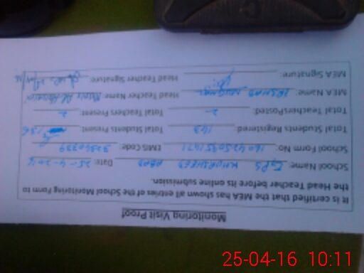 | Attendance Register | Head Teacher | MEA with School | Visit Proof |