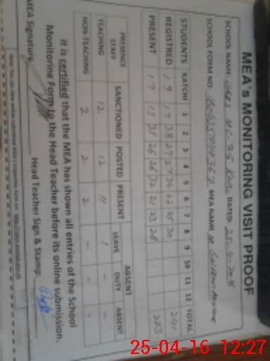 | Certified that this School was Inspected by the Undersigned MEA/DMO Today and the Information Stated Above is as Per Record. | |||||