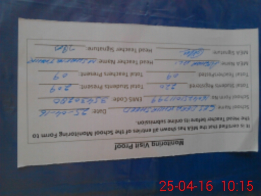 | Attendance Register | Head Teacher | MEA with School | Visit Proof |