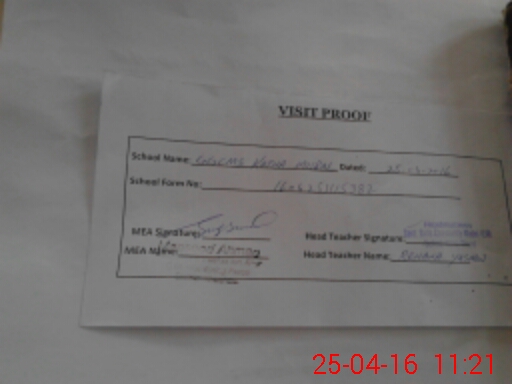 | Attendance Register | Head Teacher | MEA with School | Visit Proof |