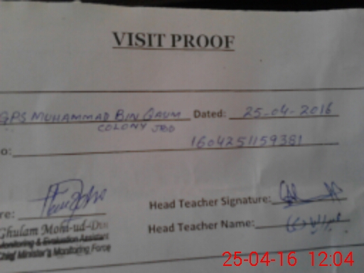 | EMIS Code: 38210447 | Name of School: GPS MUHAMMAD BIN QASIM COLONY | |||