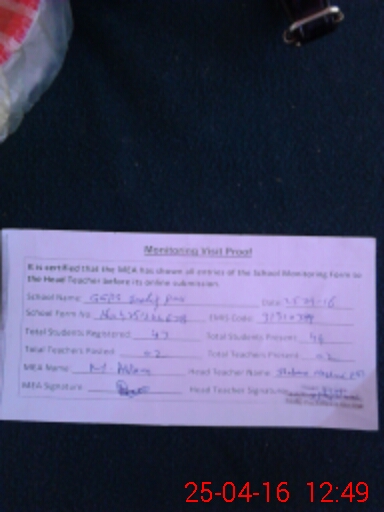 | Attendance Register | Head Teacher | MEA with School | Visit Proof |