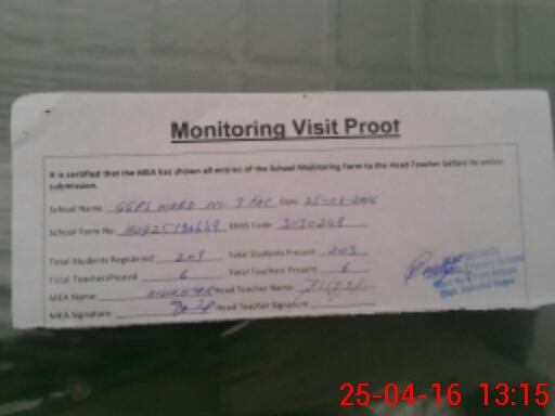 | Attendance Register | Head Teacher | MEA with School | Visit Proof |