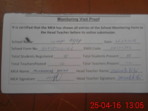 | Certified that this School was Inspected by the Undersigned MEA/DMO Today and the Information Stated Above is as Per Record. | |||||