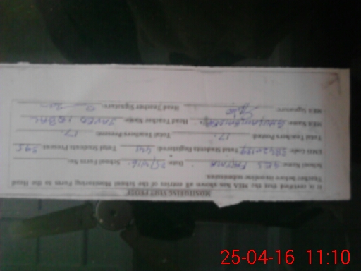 | Monitoring Date: 25-04-2016 | Start Time: 25-04-2016 10:22 AM | End Time: 25-04-2016 11:12 AM | Name of MEA: GH**** HA**** | |