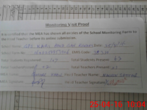 | EMIS Code: 38310077 | Name of School: GPS KARI BOND GAN PO KANDAL ISA KHEL | |||