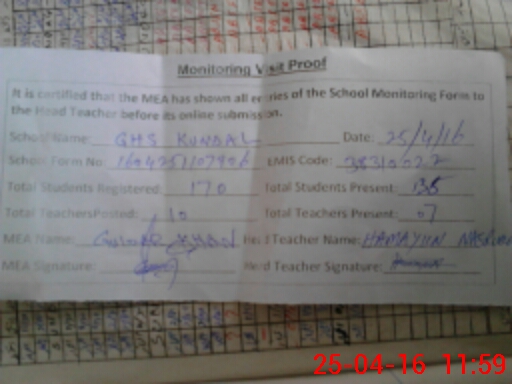 | EMIS Code: 38310022 | Name of School: GHS KUNDAL | |||