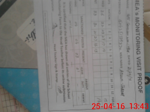 | Monitoring Date: 25-04-2016 | Start Time: 25-04-2016 01:25 PM | End Time: 25-04-2016 01:47 PM | Name of MEA: Ab**** Ja**** (S**** 20**** | |