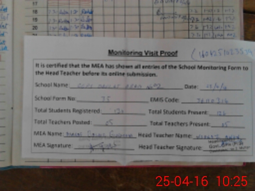| Certified that this School was Inspected by the Undersigned MEA/DMO Today and the Information Stated Above is as Per Record. | |||||