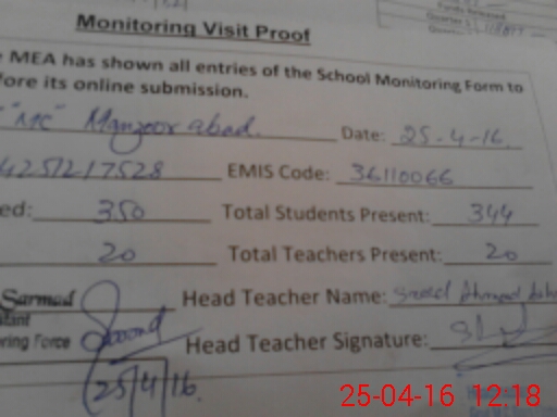 | Certified that this School was Inspected by the Undersigned MEA/DMO Today and the Information Stated Above is as Per Record. | |||||