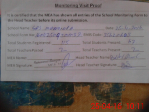 | EMIS Code: 35620603 | Name of School: GPS MANDIALA CHAK NO 20 RB | |||