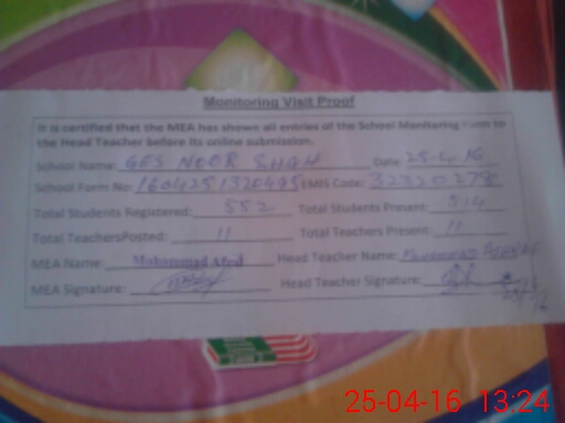 | EMIS Code: 32320278 | Name of School: GHS NOOR SHAH | |||