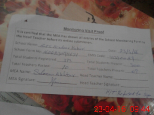 | Remarks (Use Separate Page if Required): Head teacher M Aslam Langrah SST refuse to sign visit proof chit due to absenty of teacher Shahzad Ahmad PST Leave application of tha teacher is not sing by individual and also not recmended by any authorised officer pic of leave application is save in the tab | |||||