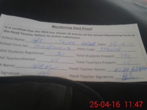 | Attendance Register | Head Teacher | MEA with School | Visit Proof |