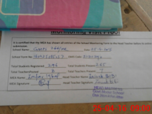 | Certified that this School was Inspected by the Undersigned MEA/DMO Today and the Information Stated Above is as Per Record. | |||||