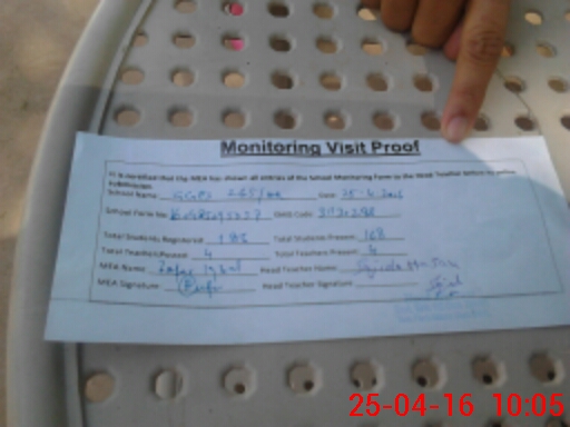 | Monitoring Date: 25-04-2016 | Start Time: 25-04-2016 09:14 AM | End Time: 25-04-2016 10:06 AM | Name of MEA: Za**** Iq**** BN**** | |