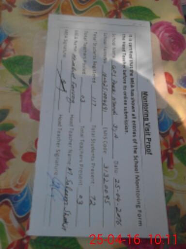 | Attendance Register | Head Teacher | MEA with School | Visit Proof |
