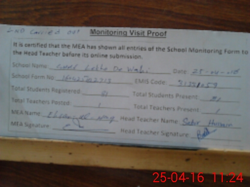 | Certified that this School was Inspected by the Undersigned MEA/DMO Today and the Information Stated Above is as Per Record. | |||||