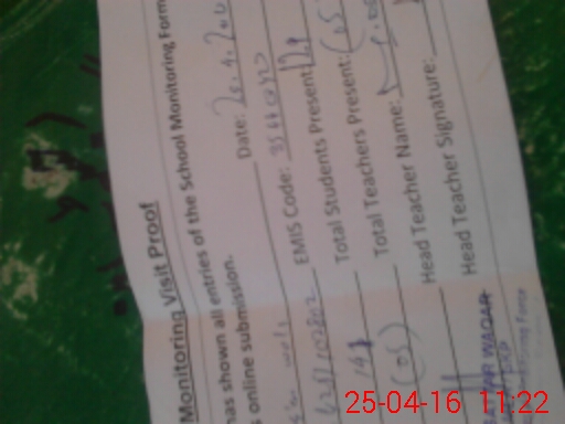 | Attendance Register | Head Teacher | MEA with School | Visit Proof |