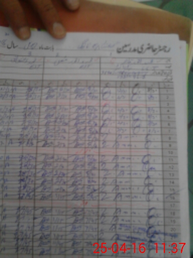 | CNIC | Full Name | Designation | R/C | Absence During Last Calender Month |