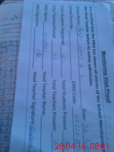 | Certified that this School was Inspected by the Undersigned MEA/DMO Today and the Information Stated Above is as Per Record. | |||||