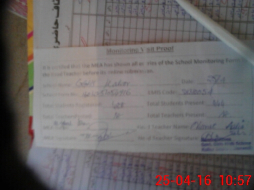 | Monitoring Date: 25-04-2016 | Start Time: 25-04-2016 10:25 AM | End Time: 25-04-2016 10:59 AM | Name of MEA: Gh**** Mu**** | |