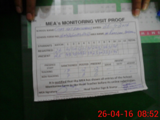 | Attendance Register | Head Teacher | MEA with School | Visit Proof |