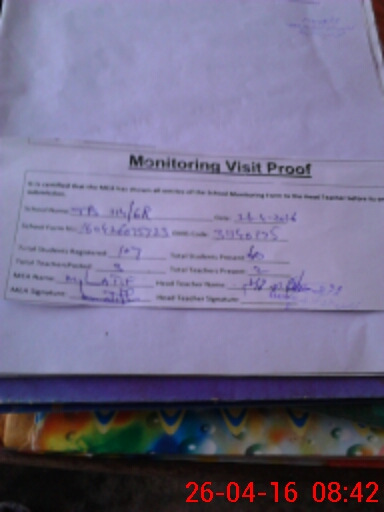 | Attendance Register | Head Teacher | MEA with School | Visit Proof |