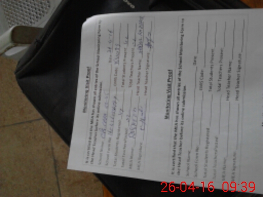 | Attendance Register | Head Teacher | MEA with School | Visit Proof |