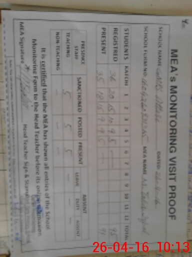 | Monitoring Date: 26-04-2016 | Start Time: 26-04-2016 09:31 AM | End Time: 26-04-2016 10:15 AM | Name of MEA: M.Ta**** Iq**** (S**** | |